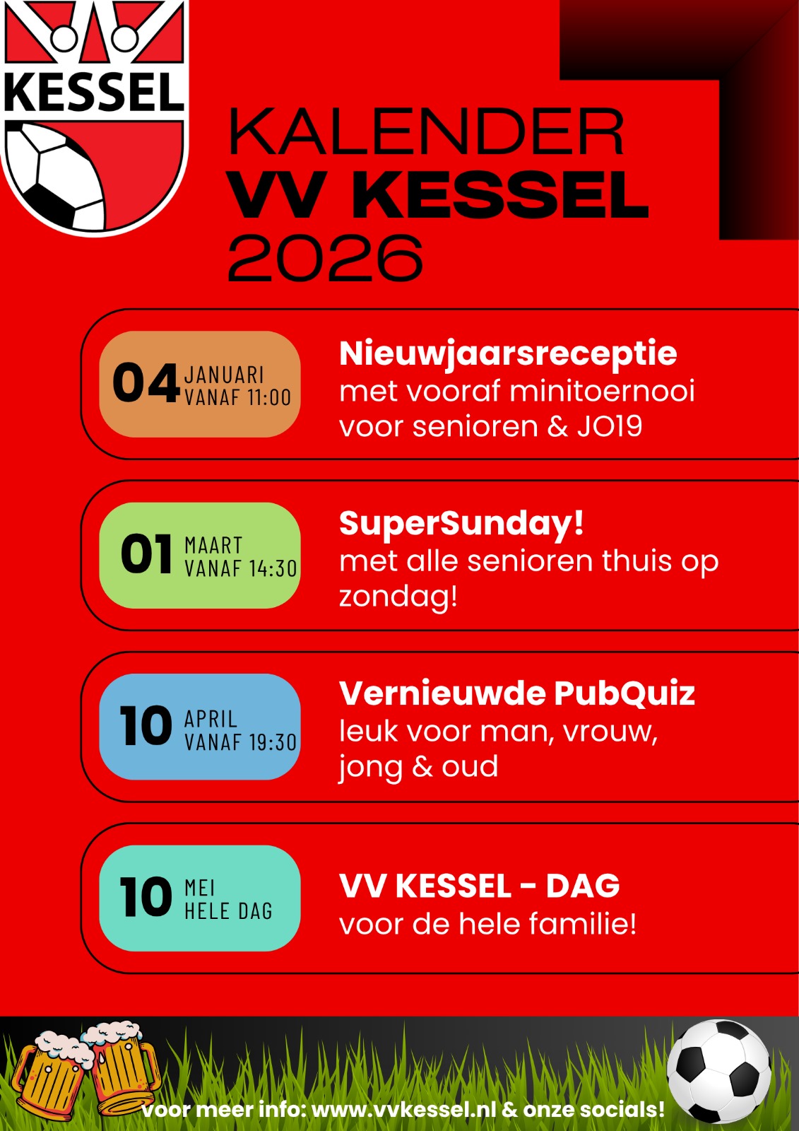 VV Kessel Uitnodiging ALV VV Kessel 2025 Vrijdag 24 oktober 2025 20.00 uur Kantine vv Kessel Agenda: Opening door [Lees meer]